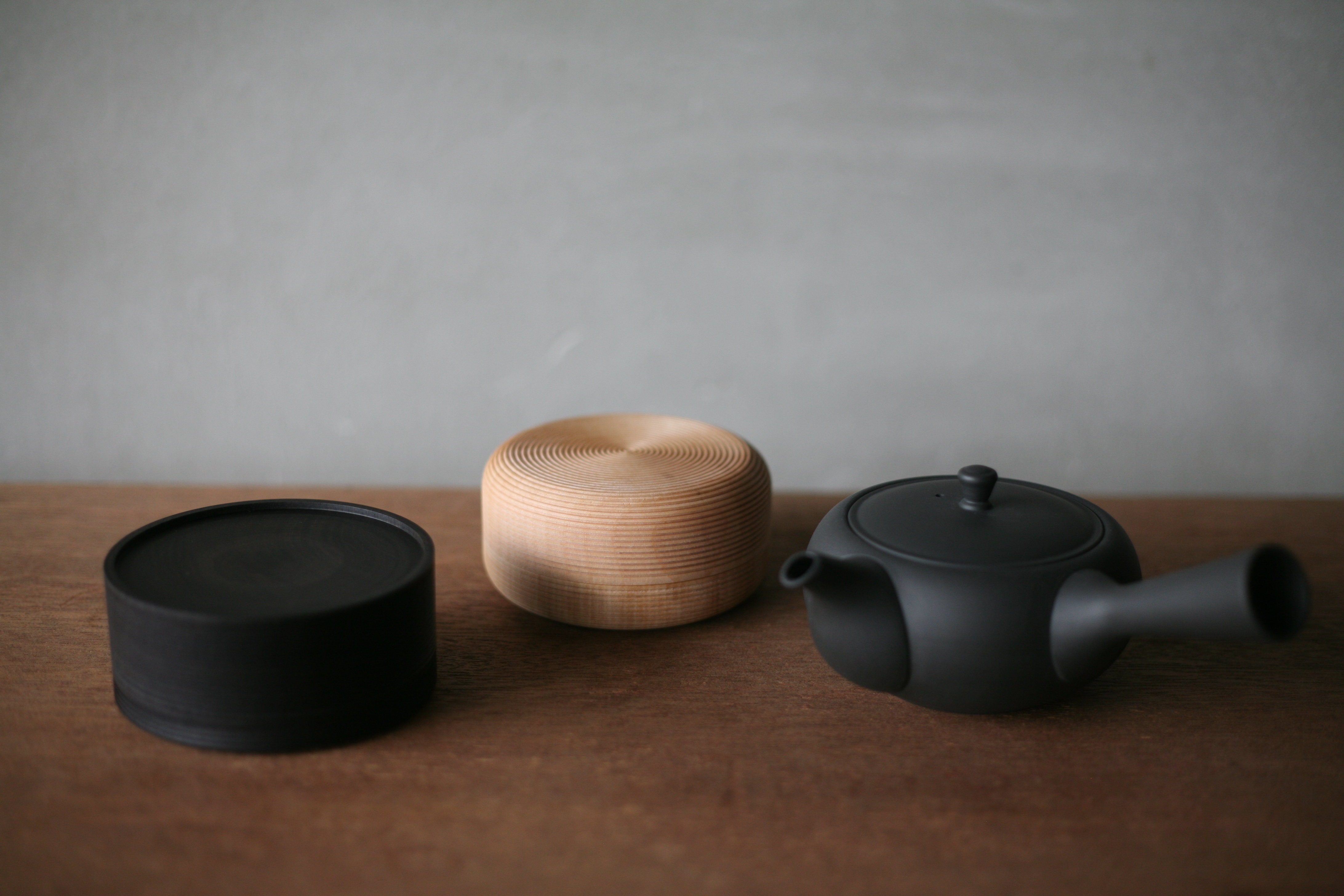 Les boîtes à thé Karmi, de la maison Gato Mikio Shoten, ont trois sortes de couleurs : bois naturel, marron et noir. En tout, il y 14 sortes de designs différents. Elles ont été conçues au départ pour y mettre du thé, soit en poudre, soit en feuille.