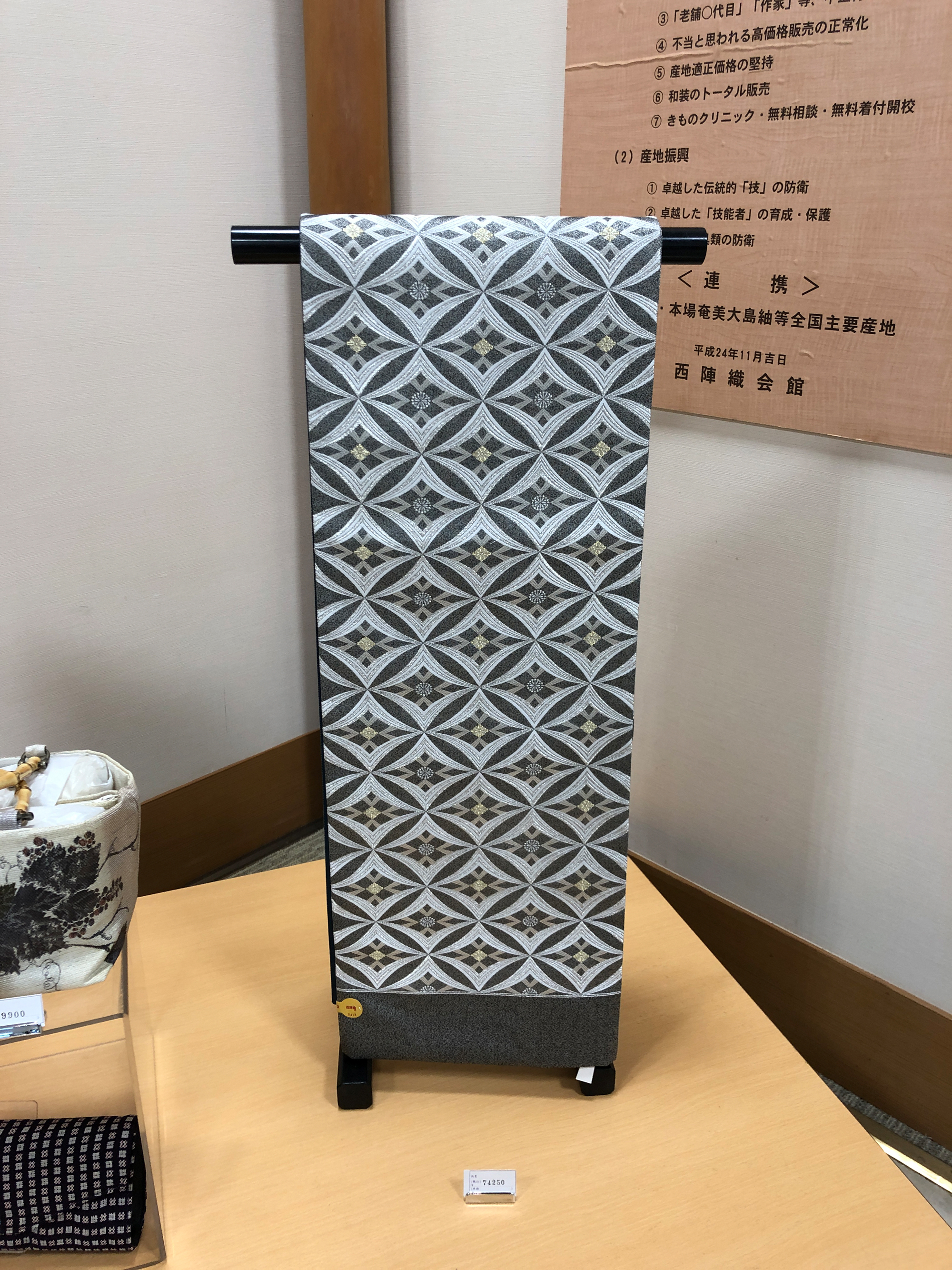 Aujourd'hui, il occupe une place privilégiée dans le textile japonais et ne se limite pas à la fabrication de tissus traditionnels pour les obi (ceinture japonaise pour les kimonos) et les kimonos, mais a étendu ses fabrications aux cravates, aux accessoires de kimono et aux articles d'intérieur. Notre Showroom d'Imadegawa est située en plein cœur du quartier de Nishijin, et à proximité se trouve le Nishijin Textile Hall, où vous pourrez découvrir les fascinants textiles de Nishijin.